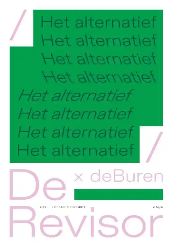 Waar kunnen alternatieve werkelijkheden beter ontkiemen dan in de kunst? In #42 HET ALTERNATIEF, een special in samenwerking met Vlaams-Nederlands huis deBuren, gaan maar liefst 23 auteurs met de realiteit aan de haal. In hun teksten nemen ze de toekomst en de geschiedenis als uitgangspunt en onderzoeken ze hoe het anders kan of had gekund. Ze presenteren uitwegen en omwegen, door de werkelijkheid subtiel te vervormen of er juist radicaal mee te breken.